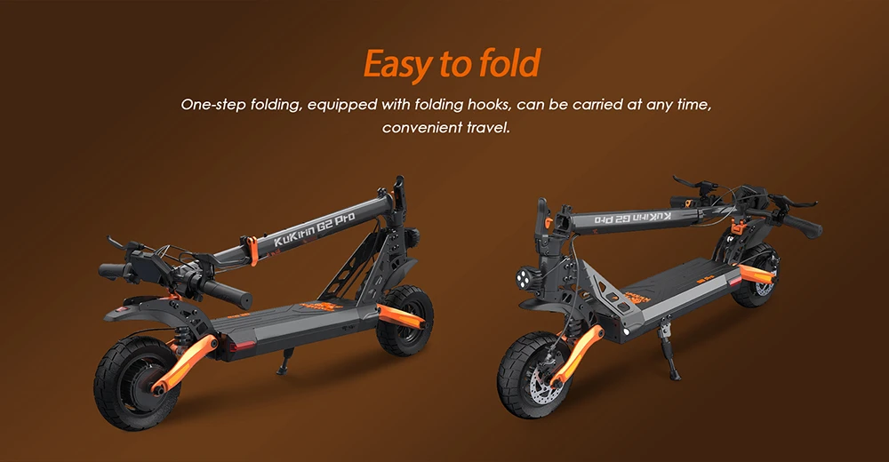 A G2 Pro összecsukható, így könnyen szállítható és tárolható.Súlya 26 kg, maximális terhelhetősége pedig 120 kg. Kormánya állítható magasságú, így bármilyen testmagasságú felhasználónak megfelel. A rollerhez ülés is jár, ami még kényelmesebbé teszi az utazást.