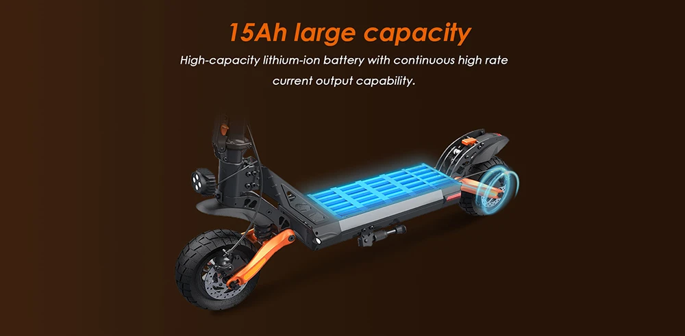 A roller 15 Ah-s akkumulátorral van felszerelve, amely egyetlen töltéssel akár 55 km-es hatótávolságot is biztosít. 9 colos, belső gumival rendelkező felfújható kerekekkel van ellátva, amelyek kiváló tapadást és kényelmet nyújtanak az aszfaltos és a földes utakon egyaránt.